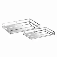 These are the Set of Two Rectangular Silver Bar Trays. They would make a beautiful and practical addition to any home, hotel or venue. Stainless steel with a mirrored base, these trays add an element of luxury and grandeur in any interior.